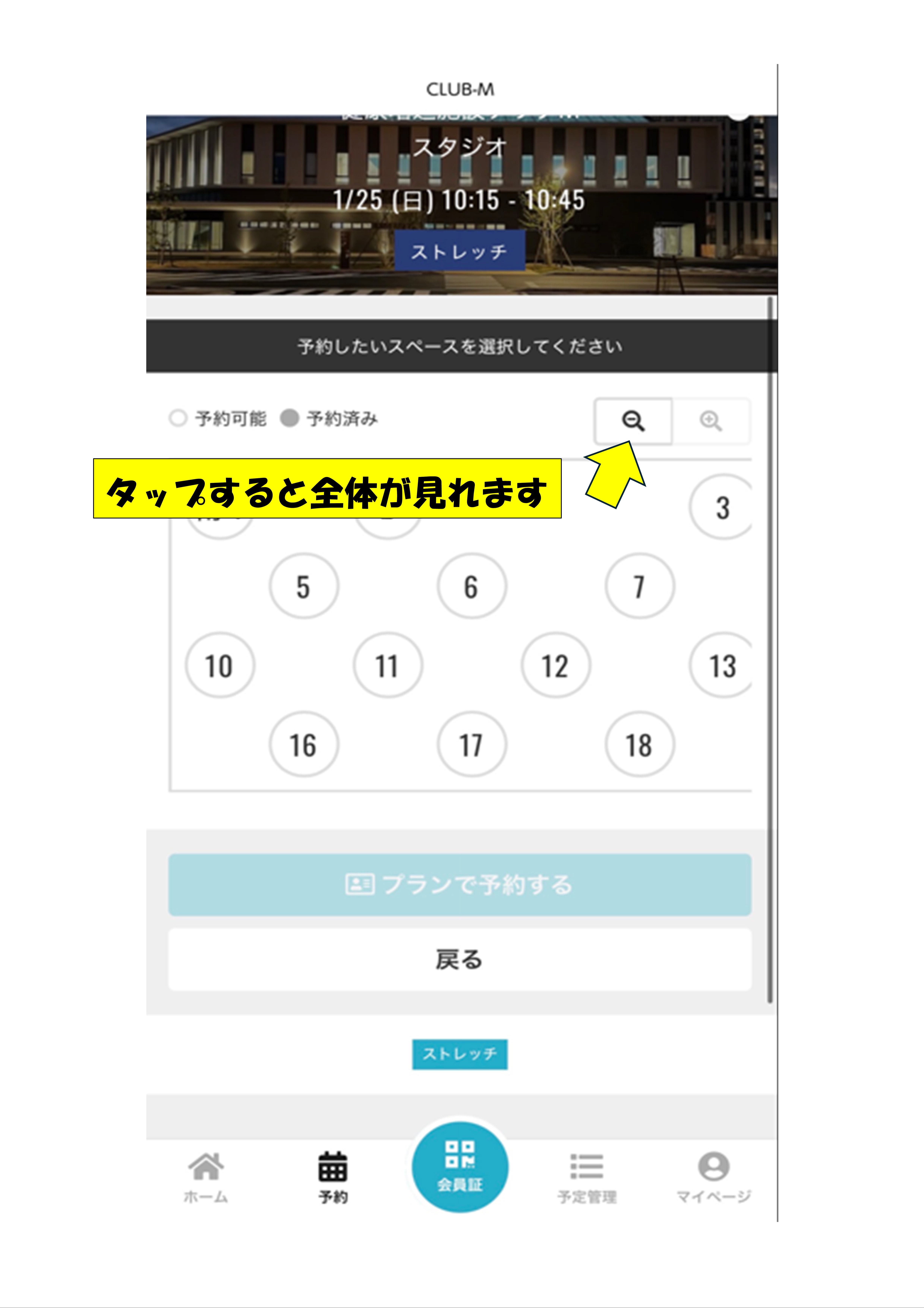上記のレッスンの予約時に、レッスンを受ける位置の予約もできるようになりました。
