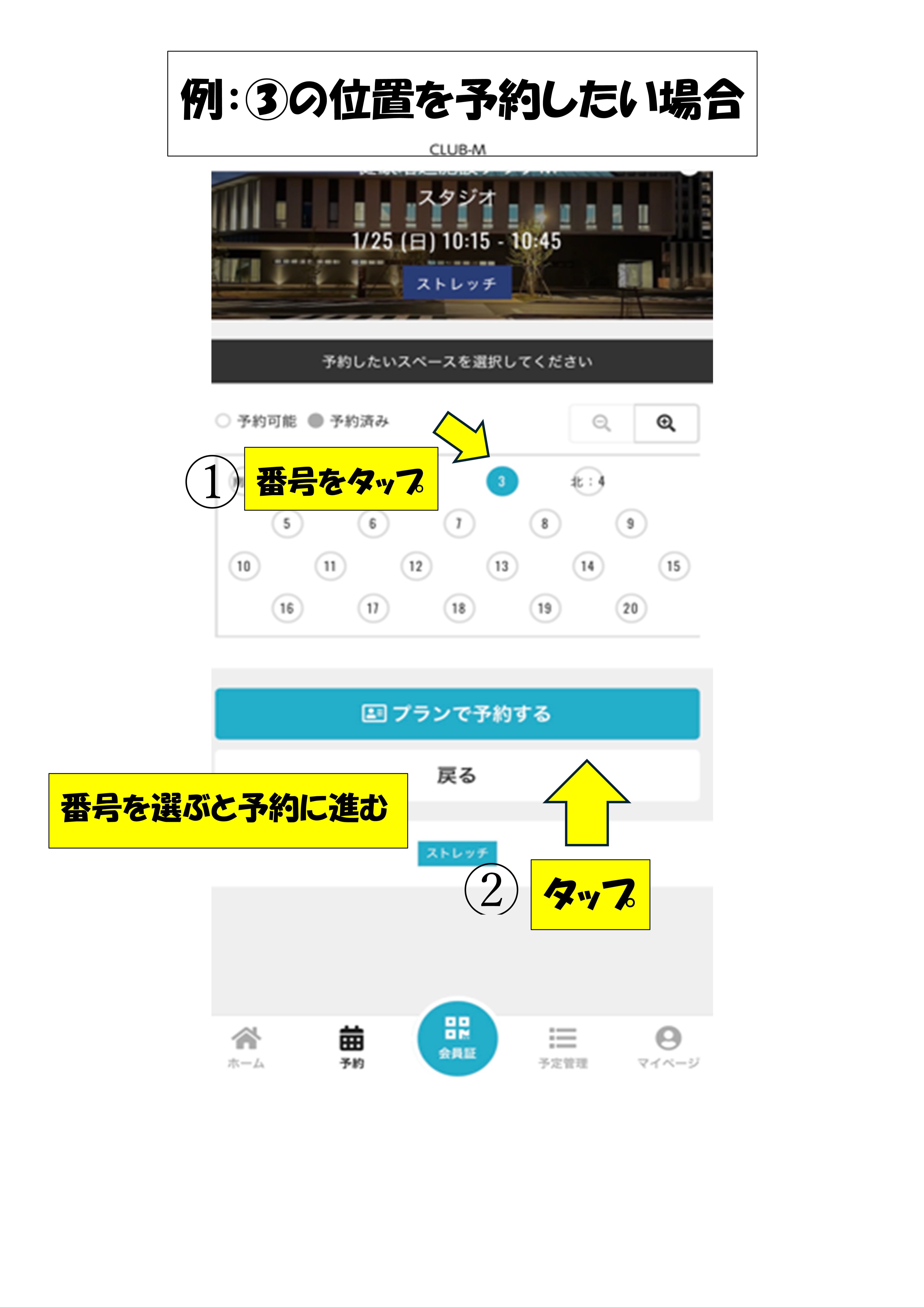 下記の画像のように番号がふってあるので、自分が受けたい位置の番号をタップ